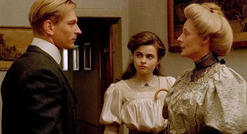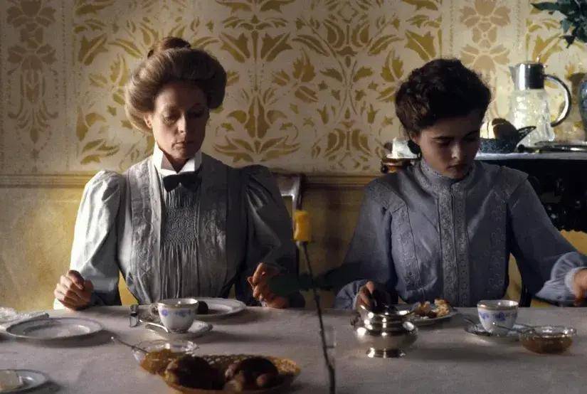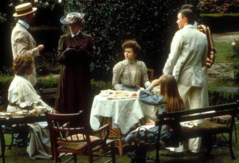 《窗外有蓝天》出身的1985年,恰是英国撒切尔政府实践经济调动与文化保守目的的顶峰时期。那时英国电影界涌现出大批的遗产电影,它们以细密的衣饰和重大的庄园为卖点,向全球出口一种对于「老好英国」的文化幻象。