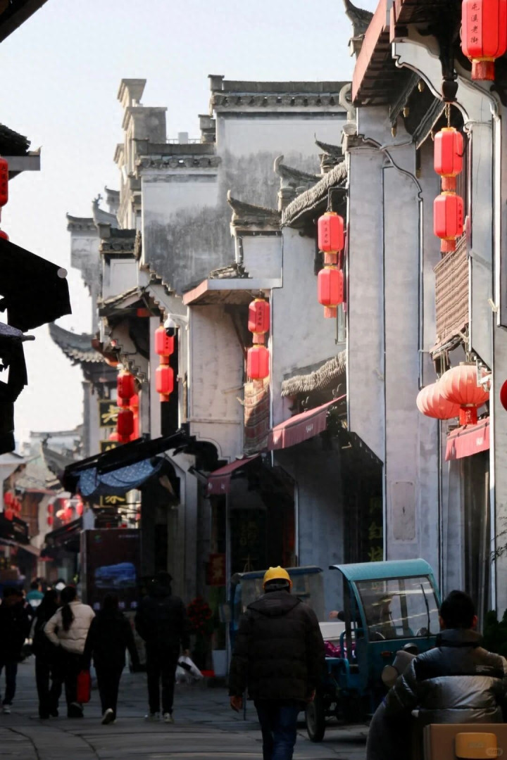 这条有着六百多年历史的老街,像一位温婉的旧时好意思东谈主,静静地躺在新安江畔。眼下的青石板路被岁月打磨得温润如玉,泛着幽幽的光。两旁是棋布星罗的老字号店铺、茶楼、墨庄,飞檐翘角间,流淌着浓浓的古意。