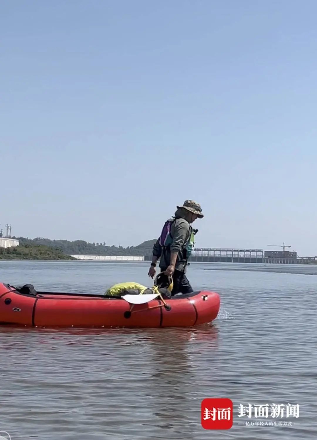 5月11日上昼11点过,从成王人黄龙溪古镇下水,沿着府河划了14公里,厚爱干与岷江水域。顶着燥热的阳光,当六合午3点附近,他抵达了导航上象征的第一处抬船点——前列1.5公里处有大坝,需要将船抬上岸,从岸上绕行。