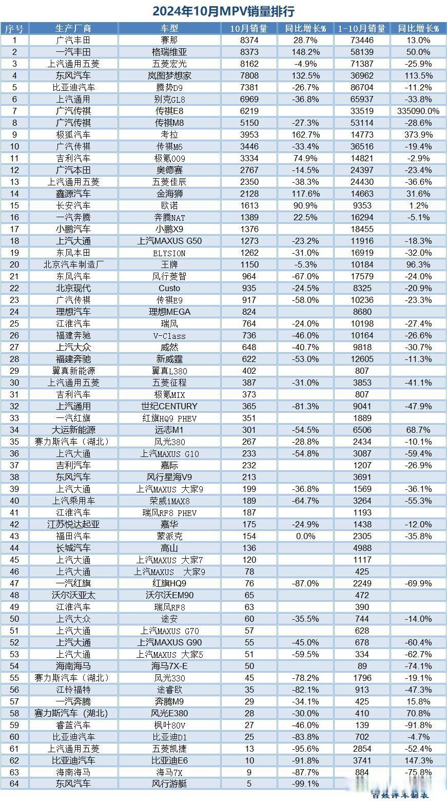 选车购车参考——2024年10月MPV销量排名欧洲杯体育