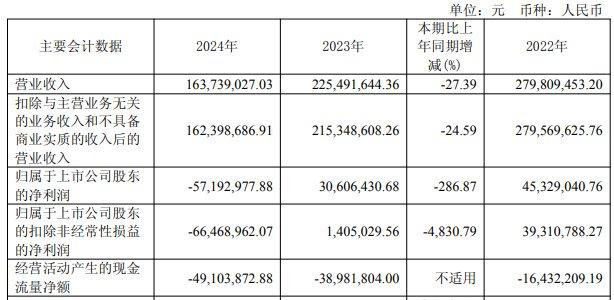 2024年,晶品特装已毕买卖收入1.64亿元,同比下落27.39%;已毕包摄于上市公司鼓励的净利润-0.57亿元,上年为0.31亿元;已毕包摄于上市公司鼓励的扣除非等闲性损益的净利润-0.66亿元,上年为0.01亿元;推敲步履产生的现款流量净额为-0.49亿元,上年为-0.39亿元。