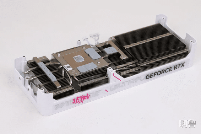 散热器的里面构造野心相配精妙——其里面选择了4根6mm的热管并通过“回流焊”工艺运动的大面积散热鳍片,显耀增强了iGame GeForce RTX 5060 Ti Ultra W OC 16GB里面的热交换面积,确保了高效的散热铁心。此外,显存与供电电路部分也均配备了导热贴片以进行降温,进一步升迁了合座的散热遵守。