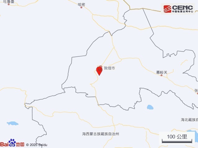 r央视网音信:据中国地震台网微信公众号音信,据中国地震台网崇拜测定,1月10日8时17分在甘肃酒泉市敦煌市发生3.3级地震,震源深度11公里,震中位于北纬39.84度,东经94.58度。