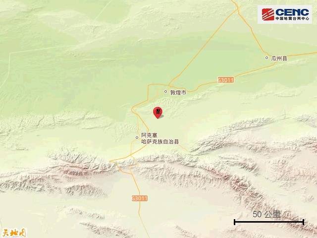 原标题:甘肃酒泉市敦煌市发生3.3级地震,震源深度11千米