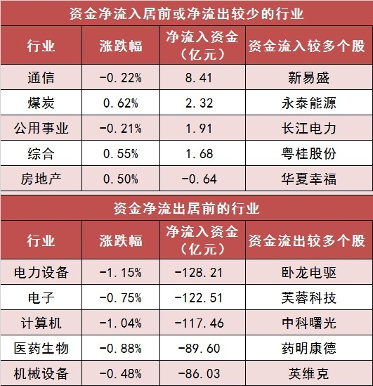 沪深300当天主力资金净流出77.78亿元,创业板净流出142.83亿元。